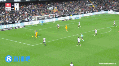 下半场补时9分钟。最终全场比赛边界,瓦伦西亚1-2皇马。