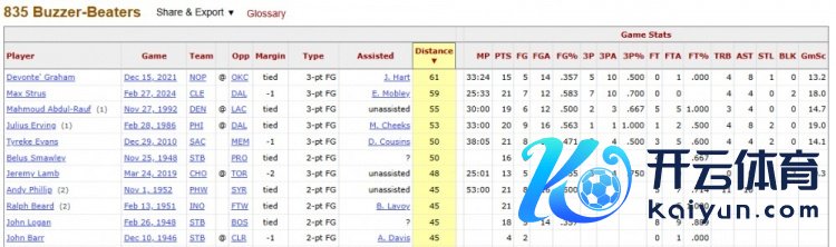 据统计,这是NBA有统计以来,历史第七远(14.95米、49英尺)的压哨绝杀球,仅次于格拉汉姆(18.6米)、斯特鲁斯(17.99米)、穆罕默德-阿布杜尔-拉乌夫(16.77米)、朱利叶斯-欧文(16.17米)、泰瑞克-埃文斯(15.25米)和伯鲁斯-斯马维利(15.25米)。