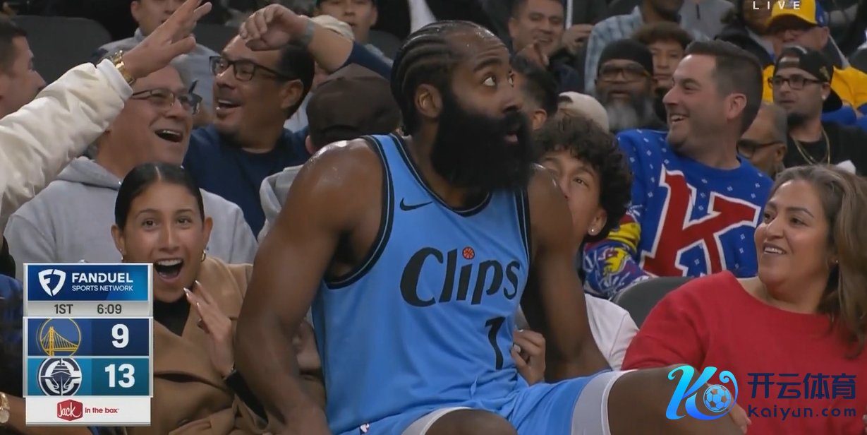 哈登大帽之后落入不雅众席🥰身边两个女球迷喜上眉梢体育录像/图片