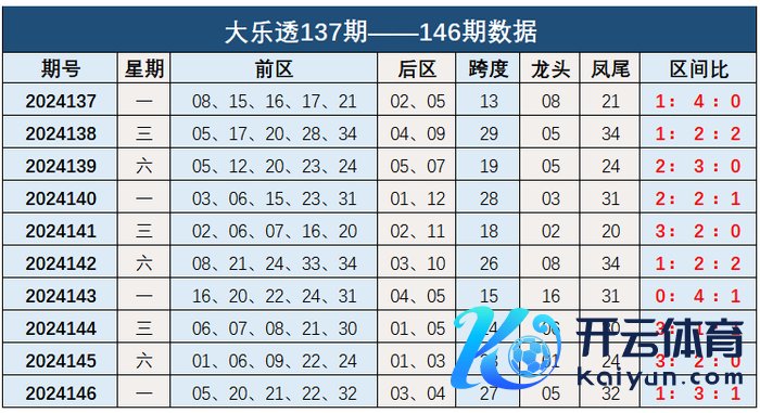 大乐透第2024146期出奖号统计:前区05、20、21、22、32,后区03、04。前区跨度27,龙头05,凤尾32,区间比比1:3:1。