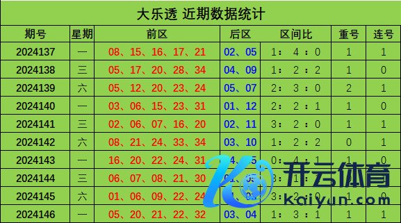 大乐透上期开出奖号:05 20 21 22 32+03 04,区间比是1:3:1,开出连号20 21 22体育赛事直播,开出重号22。