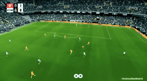 开场之后,两支球队绝不保留,拉开架势,开启了对攻方式。倒数第二的蝙蝠军团防地上存在着彰着的间隙,皇马也没好到那处去,两翼的防御,因此巴斯克斯和门迪的时常助攻,存在问题。