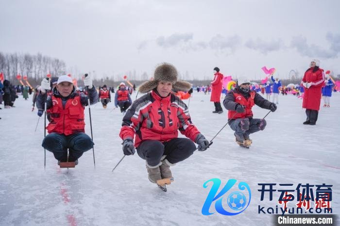 5000多东谈主扫数在冰面上“滑爬犁”。张默 摄